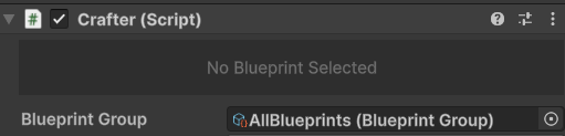 If no BlueprintGroup is assigned, the CraftingManager will default to using the Blueprints that have been assigned to it.