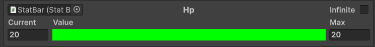 StatBar is another component that displays the Stat in a visual bar or Dial. You can assign one here in the top left of the Stat to automatically update the StatBar when any changes are made.